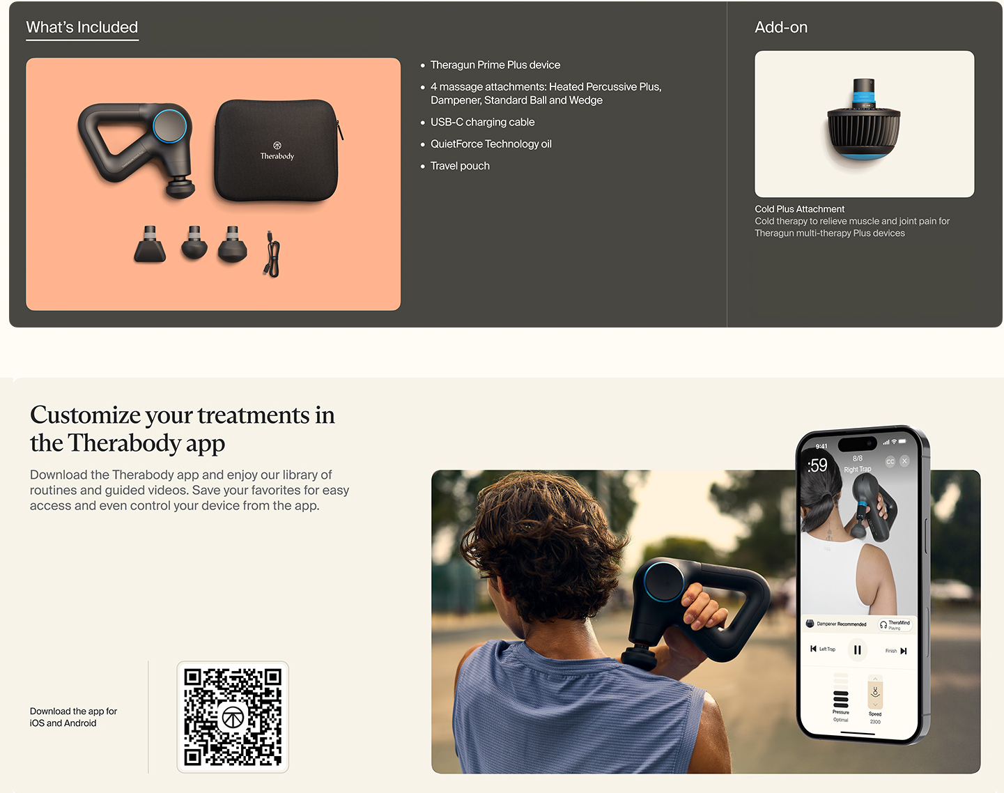 TheraGun Therabody Prime Plus Heated, Powerful Massage Gun for Enhanced Warm-Up & Workout Recovery - Quiet Deep Tissue Massager for Body and Back Pain Relief - Leg & Back Massager with Heat